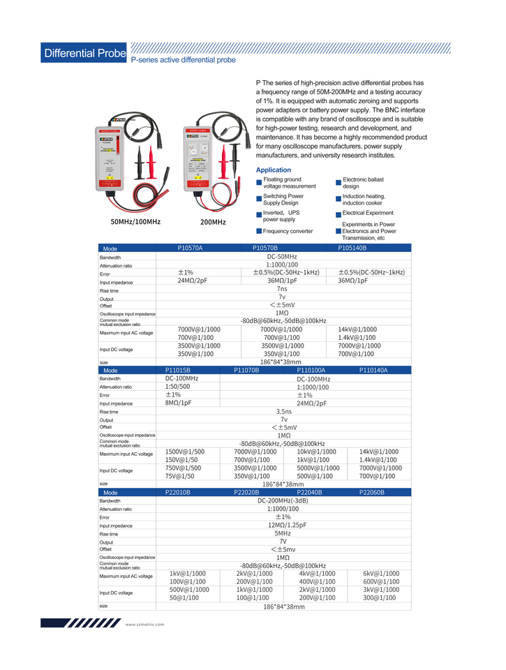 MATRIX DC 100MHz P Series Active Differential Probe P110100A 10kV Input Ultra Small Model for All Oscilloscopes Electrical