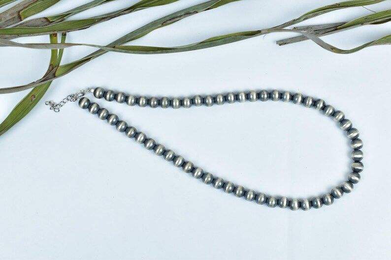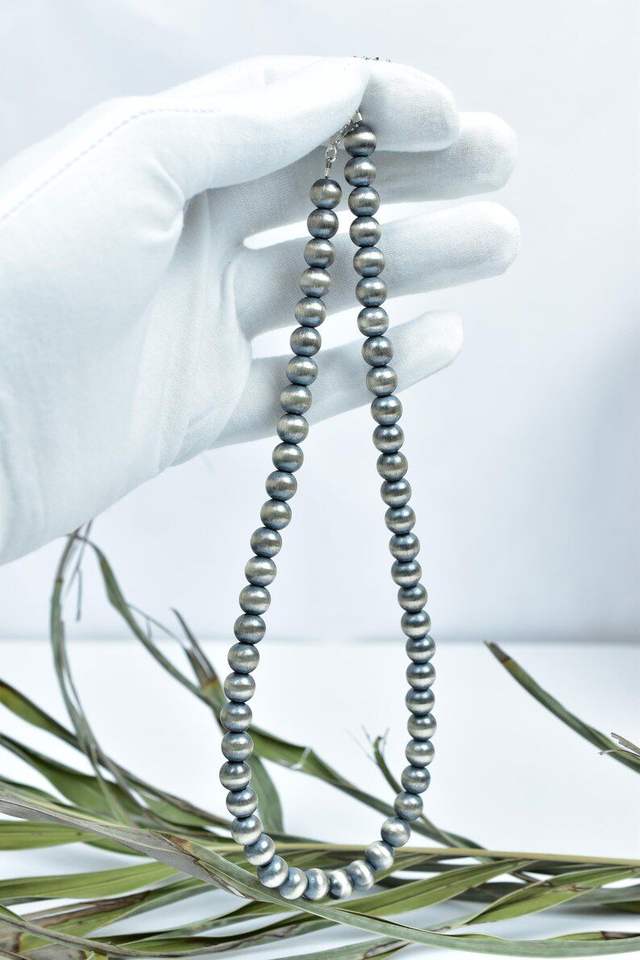 MBR GEMS & JEWELRY Handmade 8mm Sterling Silver Pearl Beaded Fancy Necklace 16'' Long Anniversary Unisex
