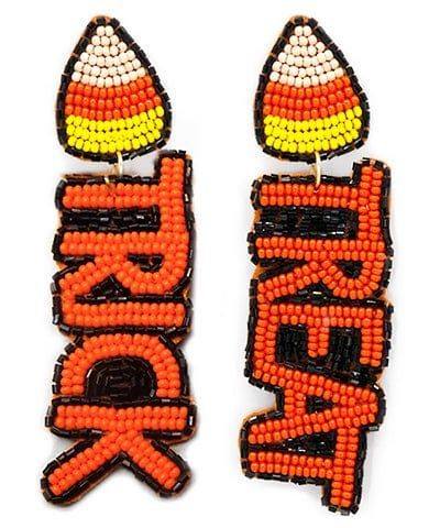 MD Handicraft Classic TRICK TREAT Seed Beaded Embroidery Huggie Earrings Pumpkin Halloween Letter Pearl Diamond Perfect Gift for