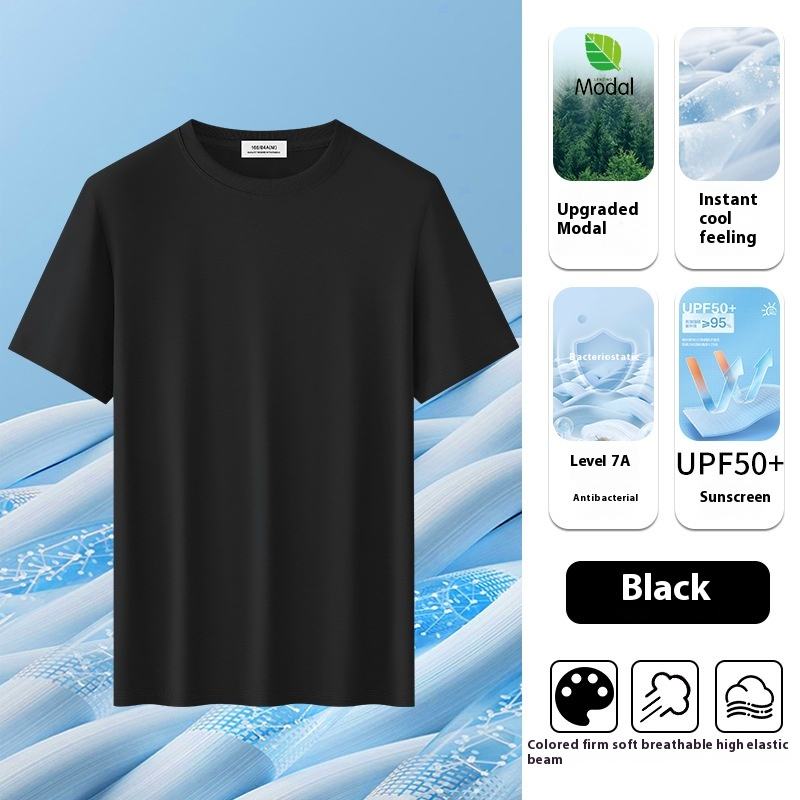 MD220 Men's Summer New White Short-sleeved T-Shirt Breathable Ice Silk Modal Neck Youth Half-sleeved Solid Pattern T SHIRTS