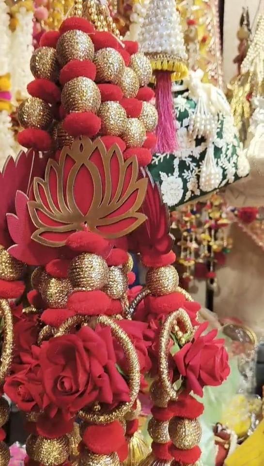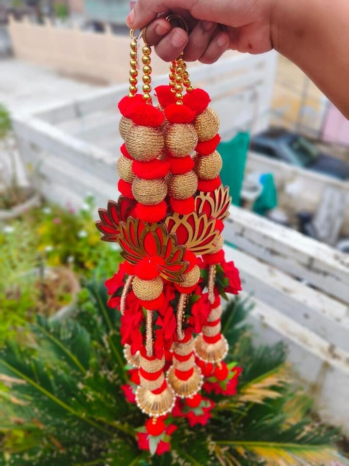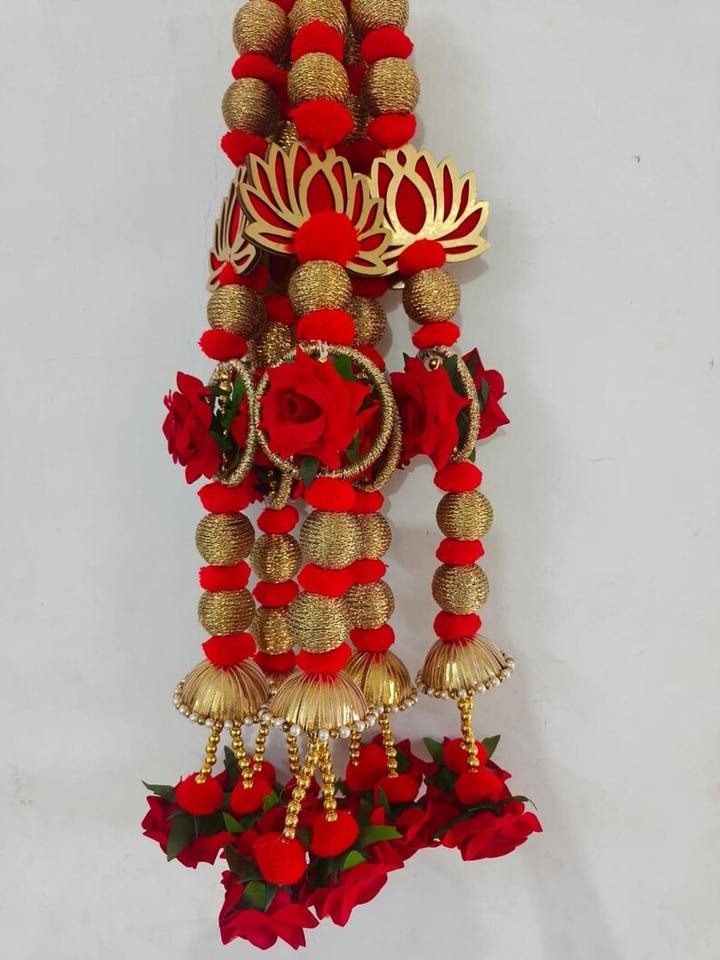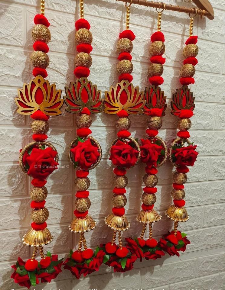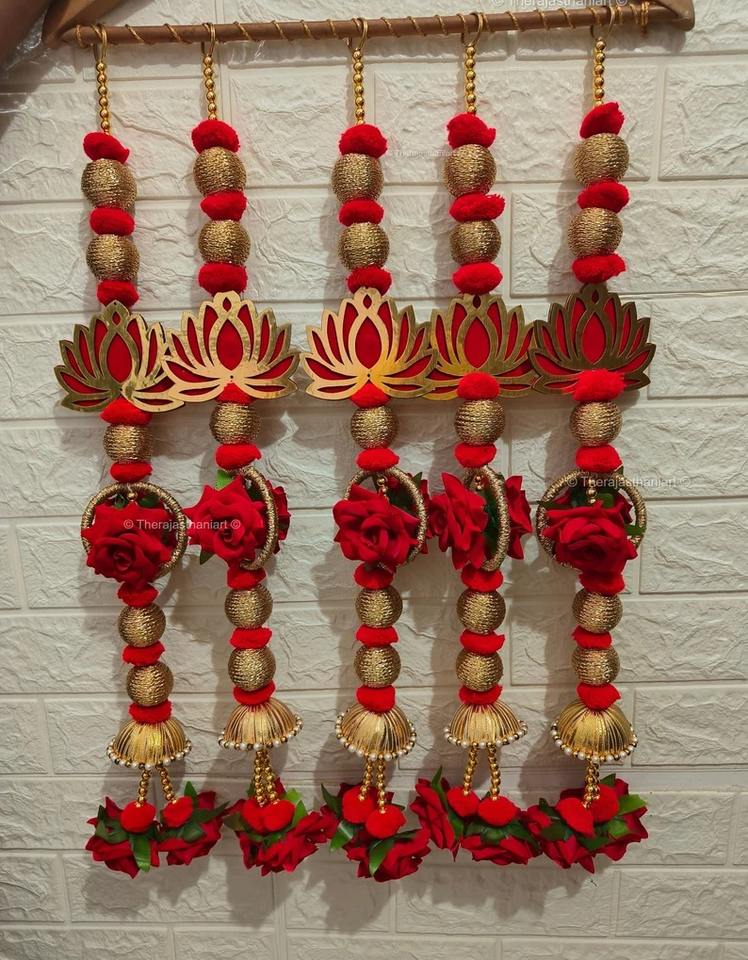 Traditional MDF Lotus Rose Flower Pom Pom Latkan String Festive Home Wedding Backdrop Temple Mandap Seemantham Nikah Durable