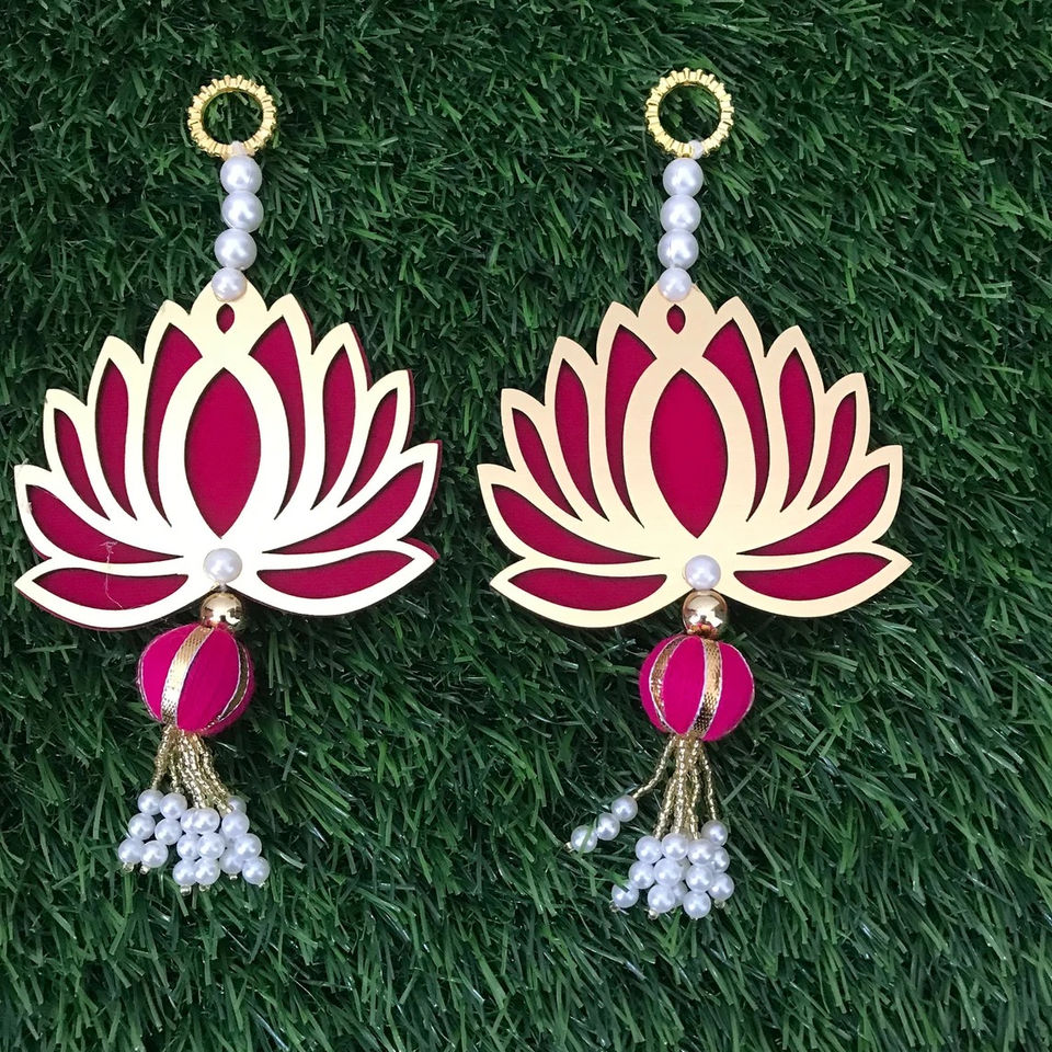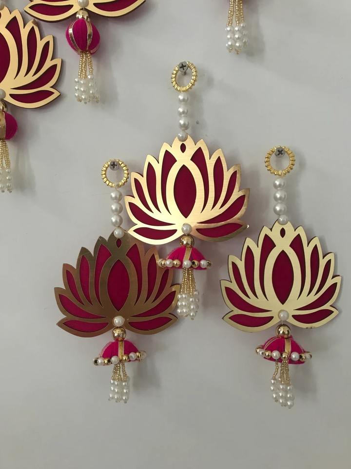 pearl beads, lotus made of mdf, thread, metal ringmaterial
