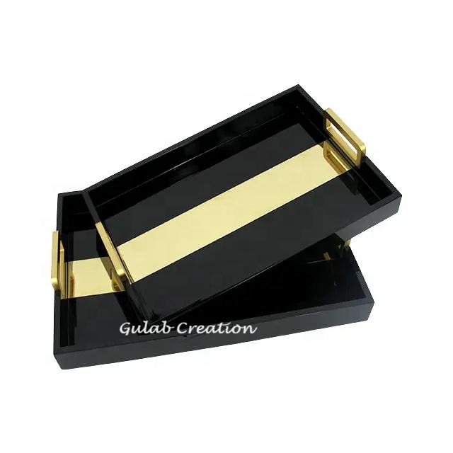 Product Name:Brass Inlaid wood Serving Tray