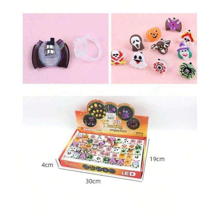 MEGAN SHOP 50-Piece Halloween Luminous LED Ring Glowing Halloween Lights for Festive Decorations