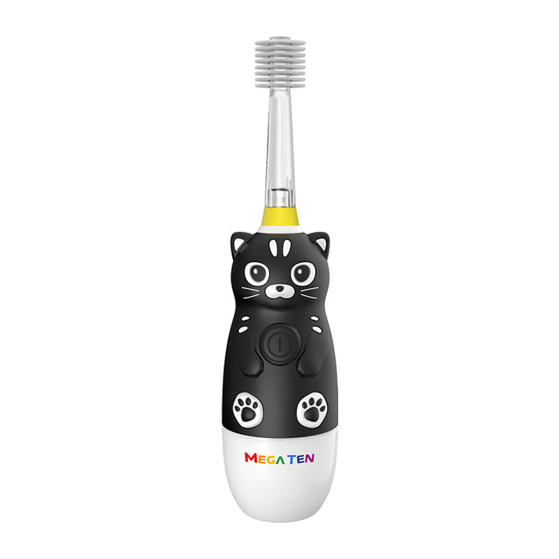MEGATEN kids electric toothbrush-Black Cat 3 Minutes Timer Travel Oral care for kids 360 degree brush head