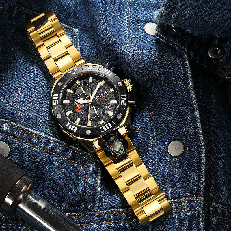 MEGIR Global Wholesale High Quality Fashion Alloy Waterproof Men's Multi Function Timing Compass Outdoor Quartz Watch