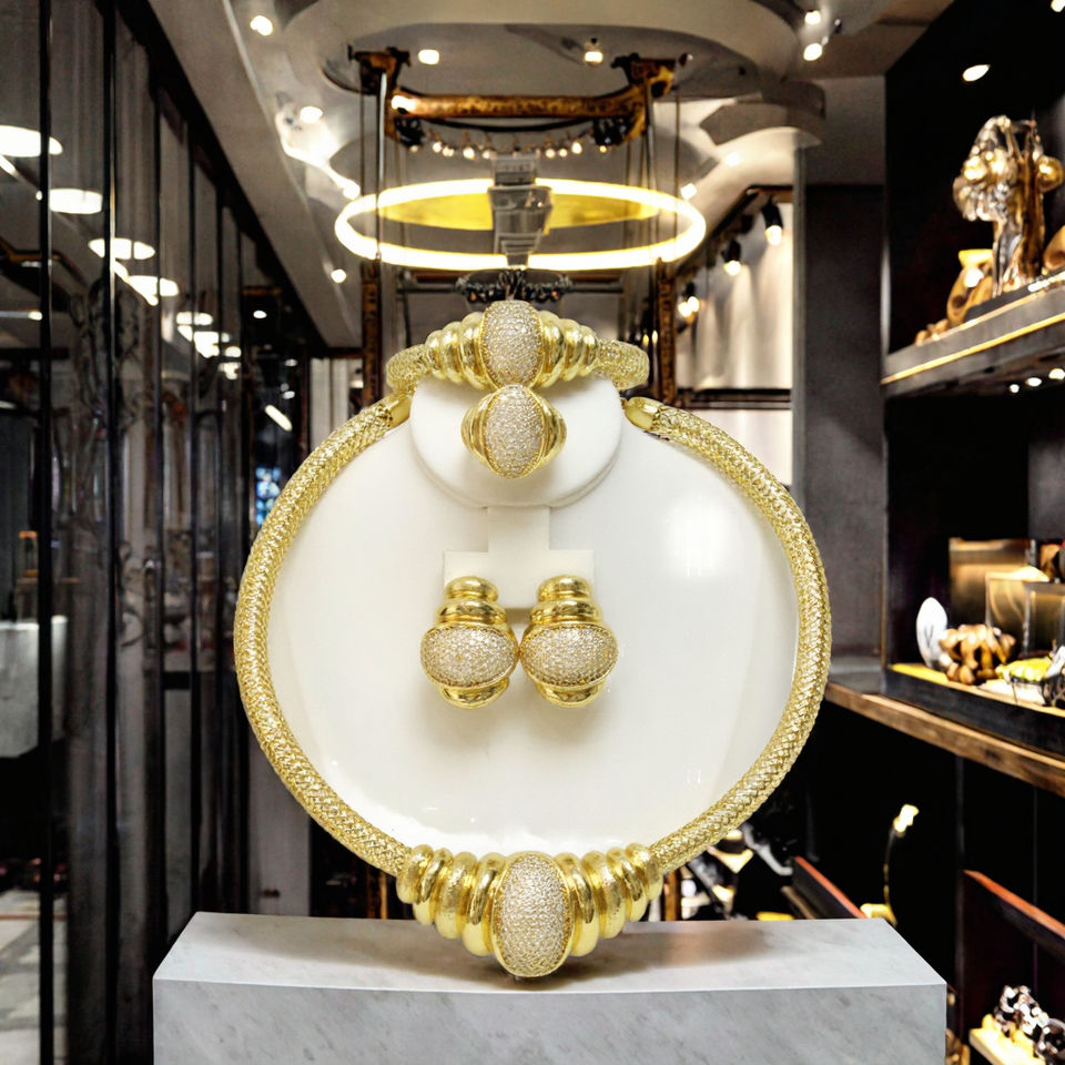 MEIZI Luxury Fine Fashion 24K Gold Plated Dubai Jewelry Sets for Women Copper Zirconia for Weddings Engagements Parties Perfect