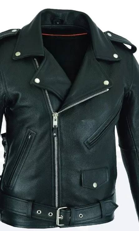 MEN'S GENUINE COWHIDE PREMIUM LEATHER MOTORCYCLE BIKER TOP LEATHER JACKET BLACK