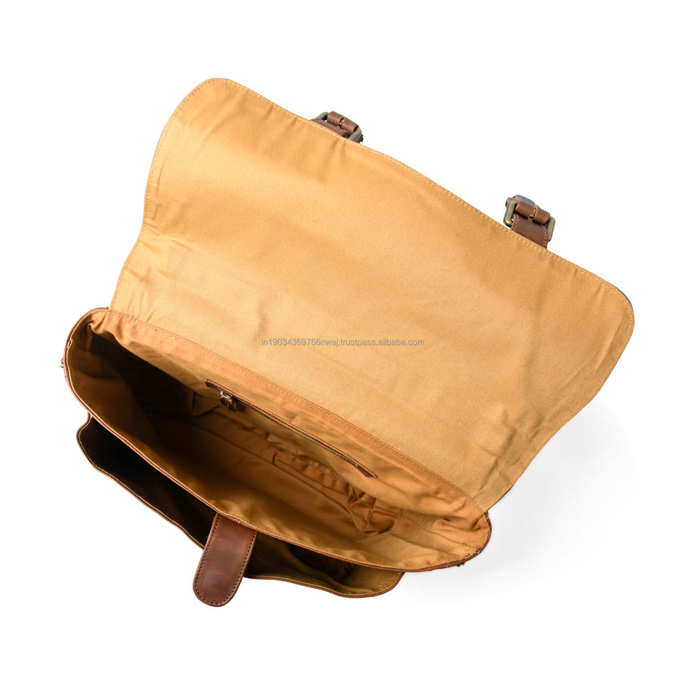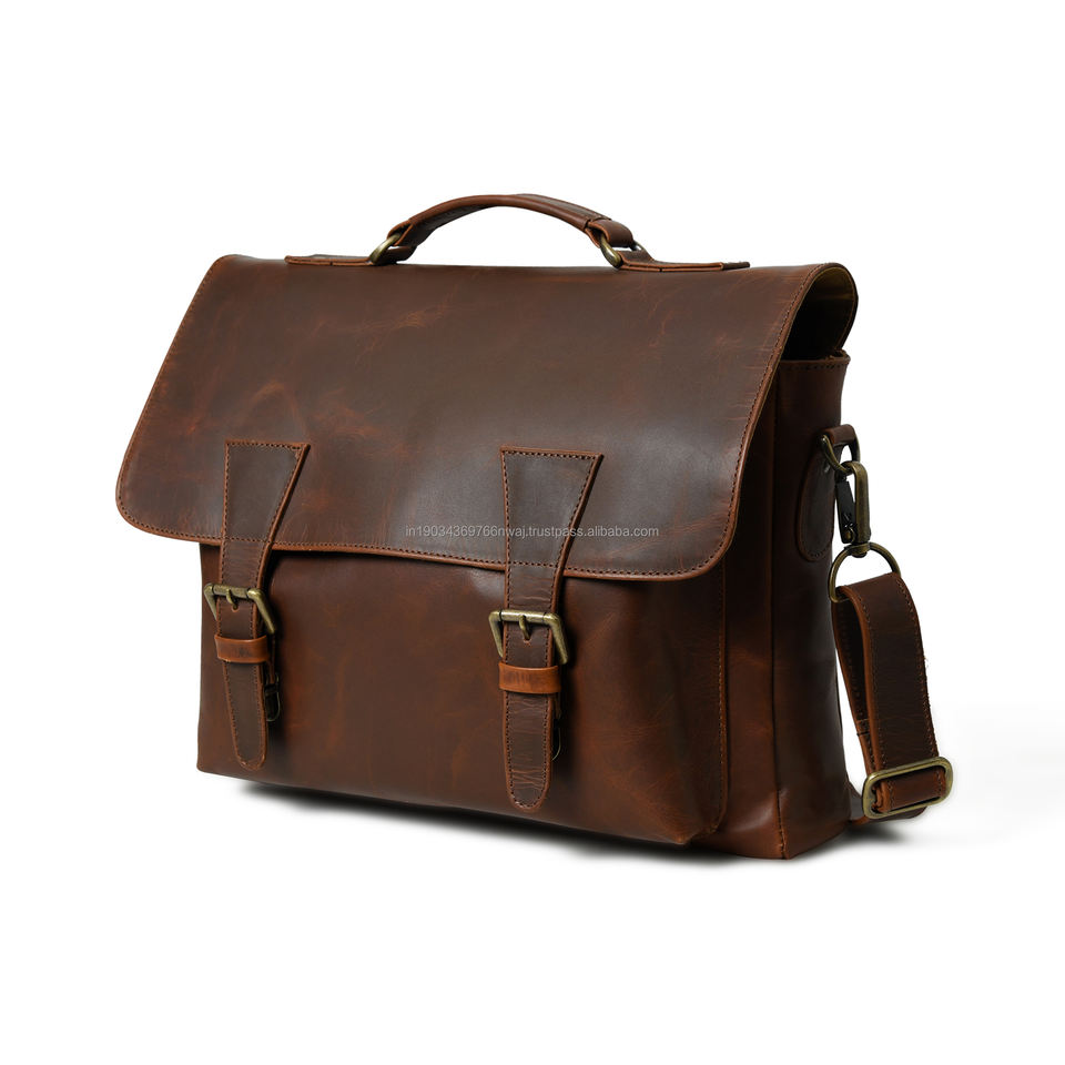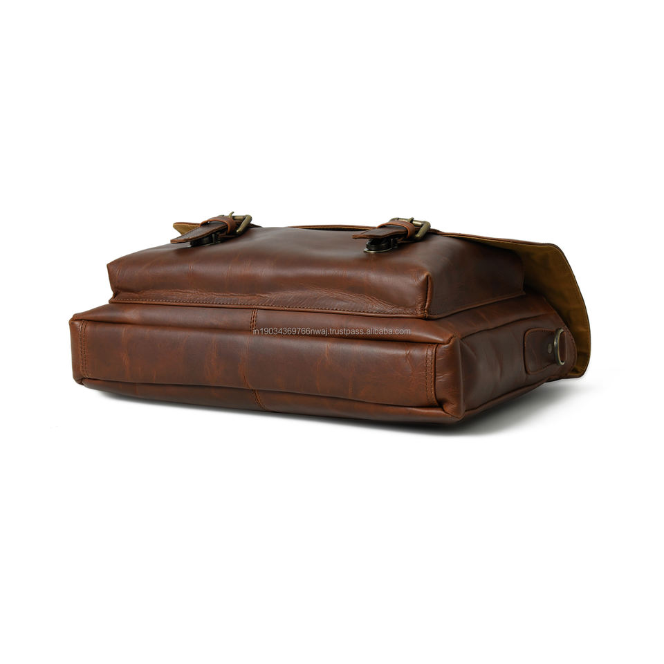 Men's Bohemian Vintage Style Genuine Leather Satchel Crossbody Bag with Geometric Pattern Rivet Strap Lock All Seasons Use