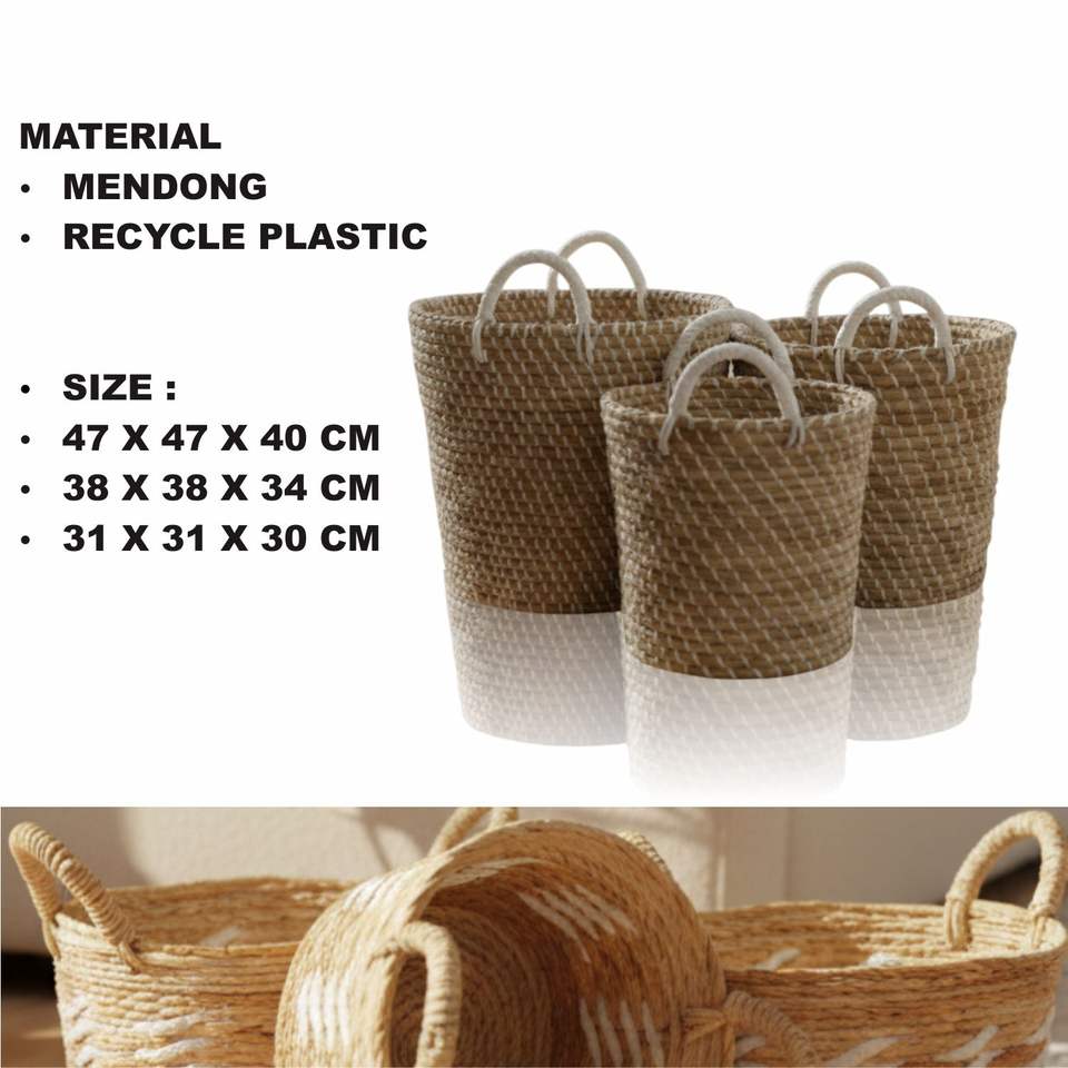 MENDONG BASKET SET OF 3 CAP MENDONG RECYCLE PLASTIC HANDICRAFT