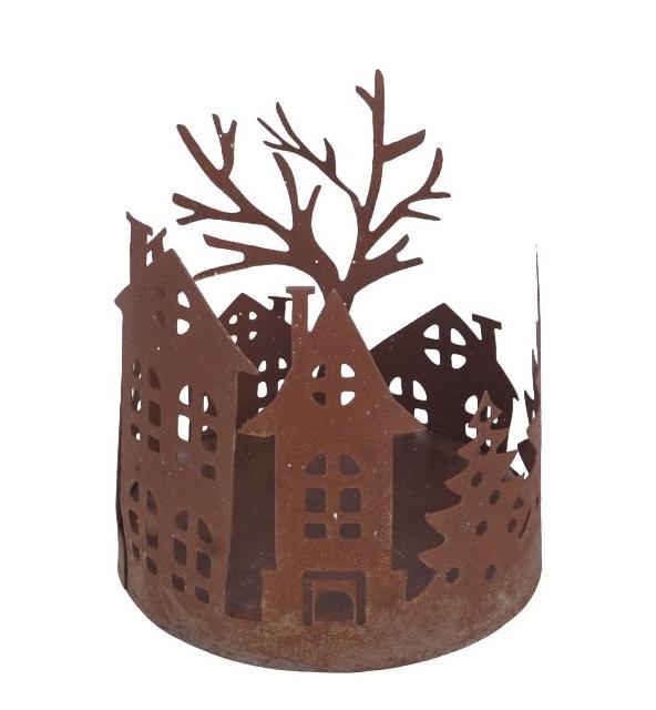 METAL BROWN RUST TEA LIGHT FESTIVE ELEGANCE IRON CHRISTMAS TREE CANDLE HOLDER for WEDDING and HOLIDAY DECOR.