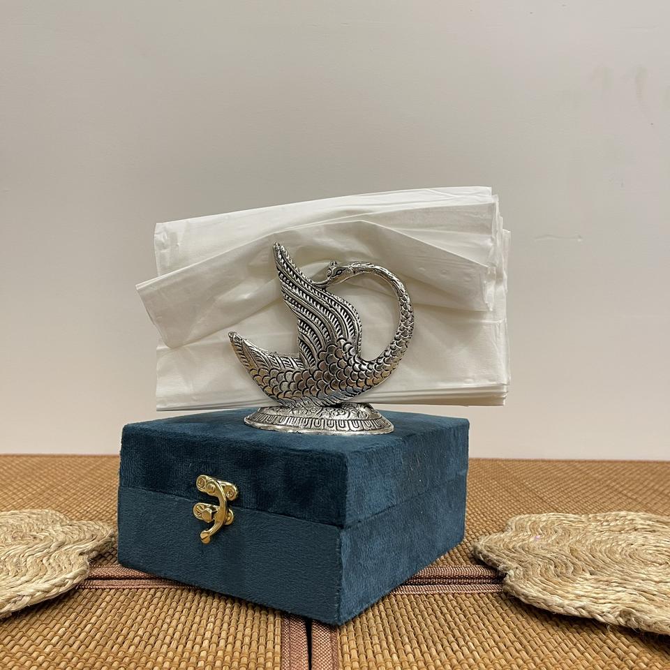 METAL HANDICRAFT SILVER PLATED SWAN SHAPE NAPKIN AND TISSUE HOLDER WITH VELVET BOX