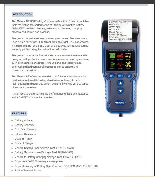 METRAVI BATTERY ANALYSERS BT-900 Battery Testing System Testing