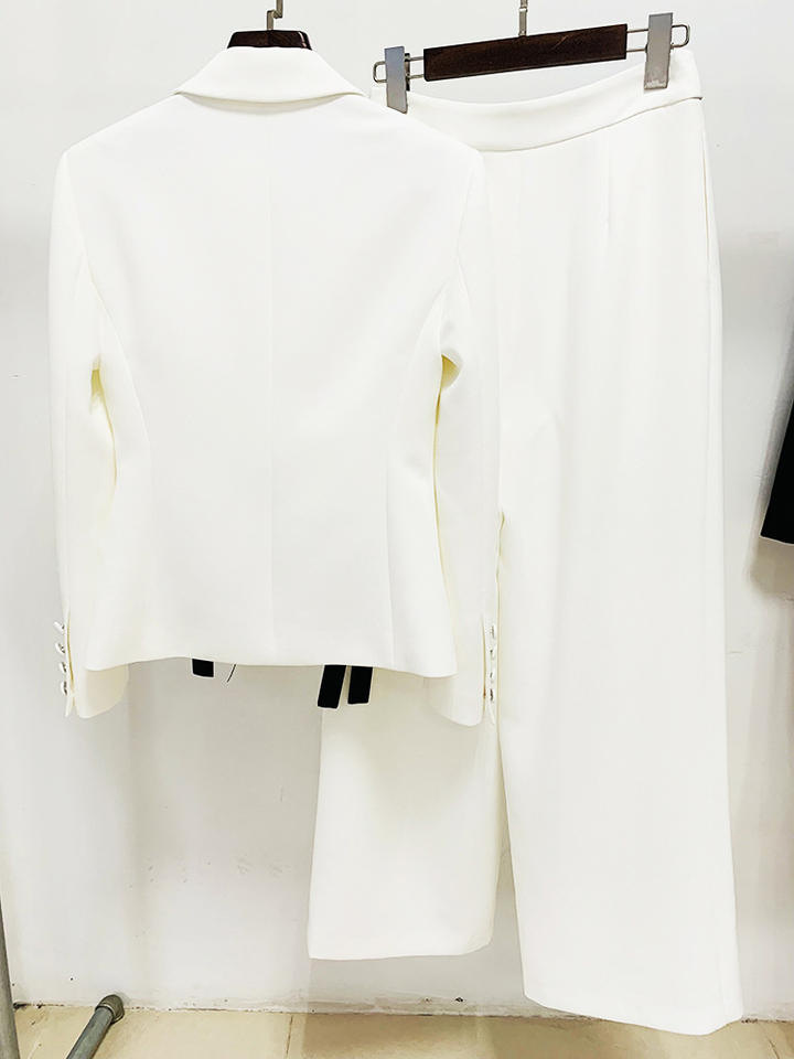 MF Casual Lady Double Breasted Solid Knitting Two Piece White Women Jacket Pant Long Sleeve Eco-Friendly Breathable Quick Set