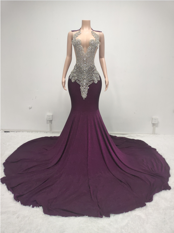 MF Customized Sexy Backless Long Red Prom Sweep Train Simple Glitter Diamante Beaded Applique Black Girls Party Evening Dress