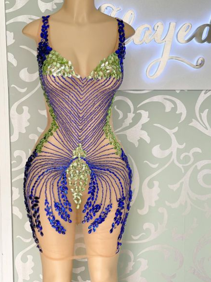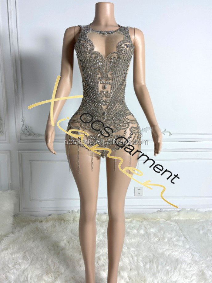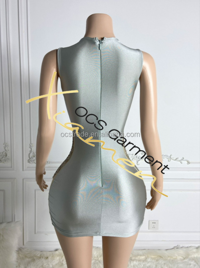 MF Fashion Jersey Bodycon Empire Waist Sleeveless Beaded Glittering Crystal Mini Dresses for Party Club Wear Sexy