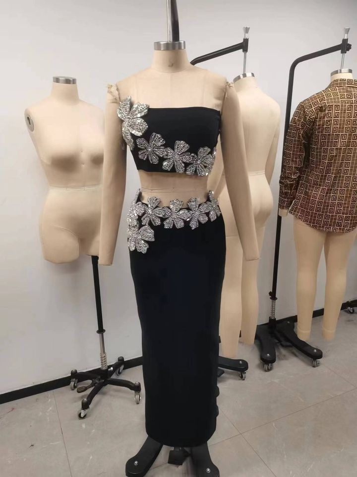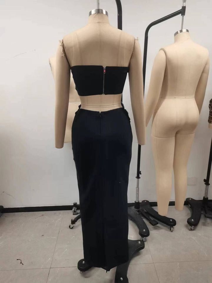 MF Outfits Sexy Crop Top Bandage 3D Flower Print Dia Sparkly Skinny Two Piece Skirt Set Women Winter