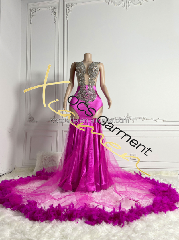 Marvellous MF Sleeveless Ostrich Feather Satin Beaded Maxi Ball Gown Teenagers Orange Sparkly Formal Prom Dress