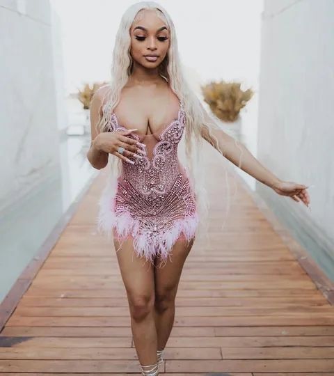 MF Sparkling Birthday Rhinestone Woman Sexy Dia Applique Ballroom Party Hot Mini V Neck Polyester Performance Wear Dress
