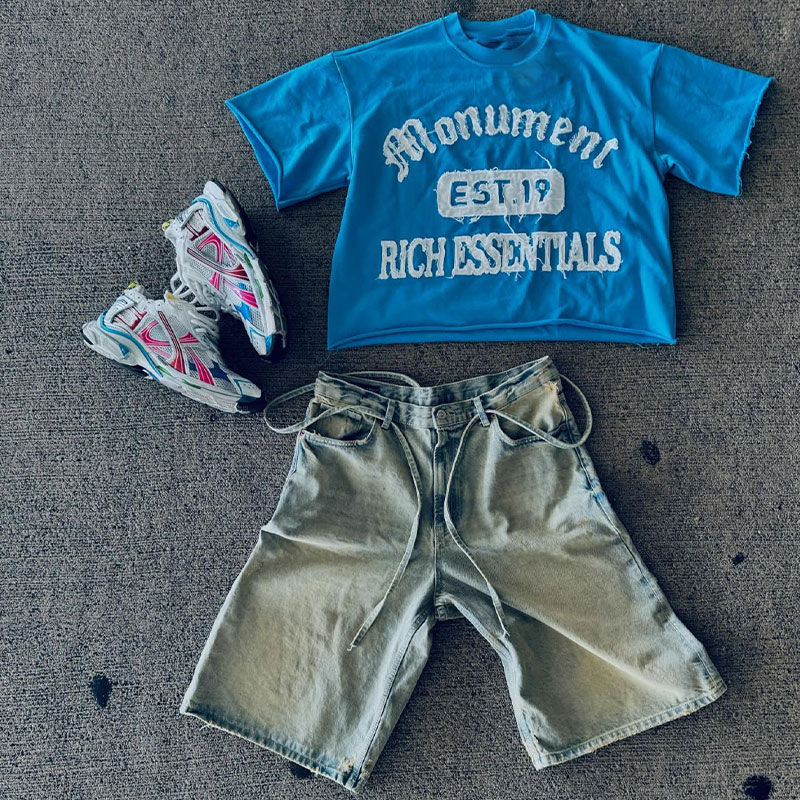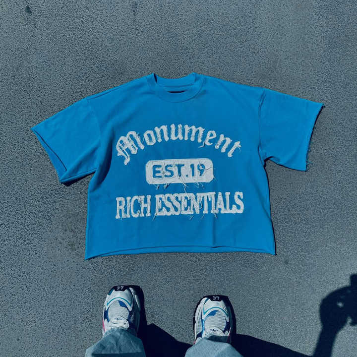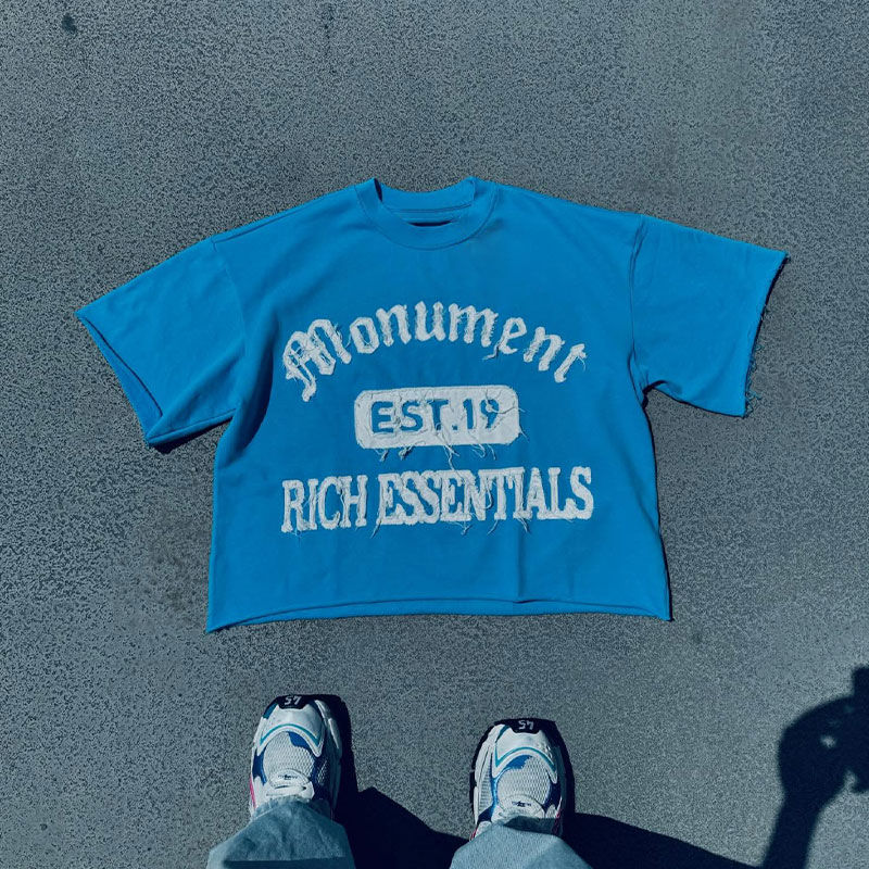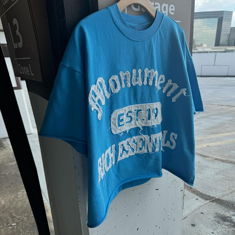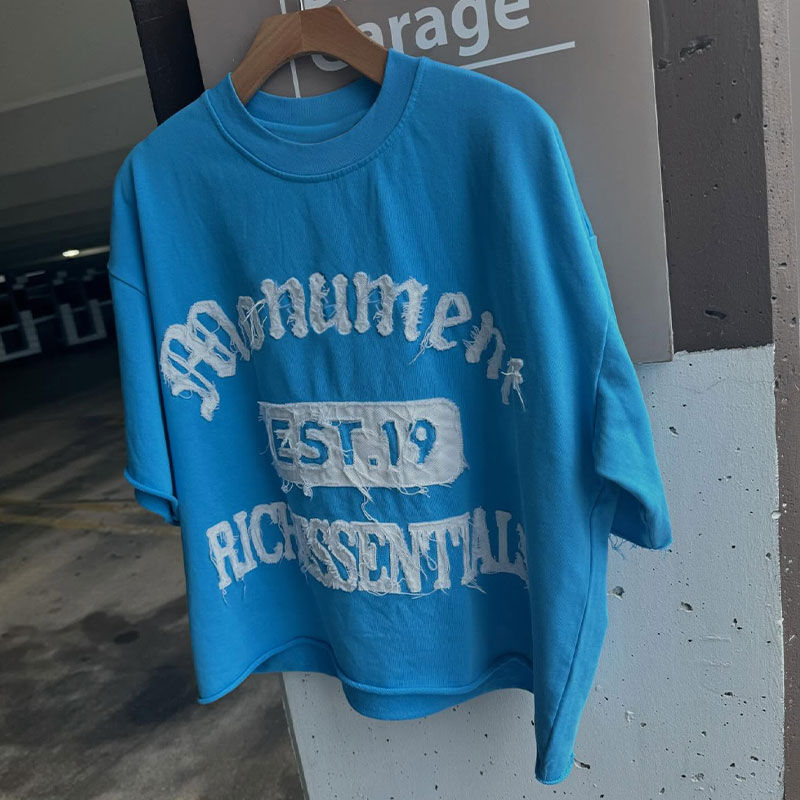 MFG TRADE Men's 100% Cotton Boxy Cropped T-Shirt Loose Fit Distressed Embroidery Hip Hop Style Wholesale Oversize Knitted
