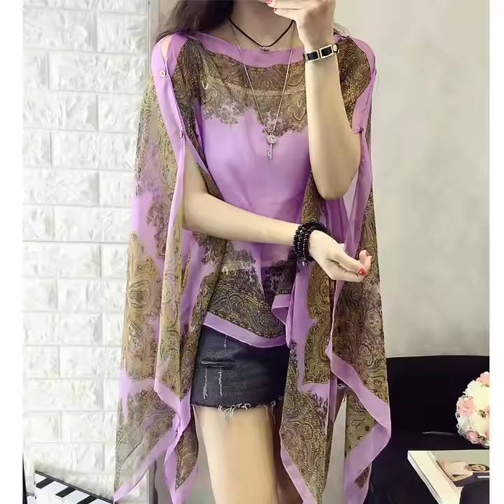 MHK110 Women Summer Variety Shawl Sunscreen Cashew Nut Flower Scarf Chiffon Cover up Quick Dry