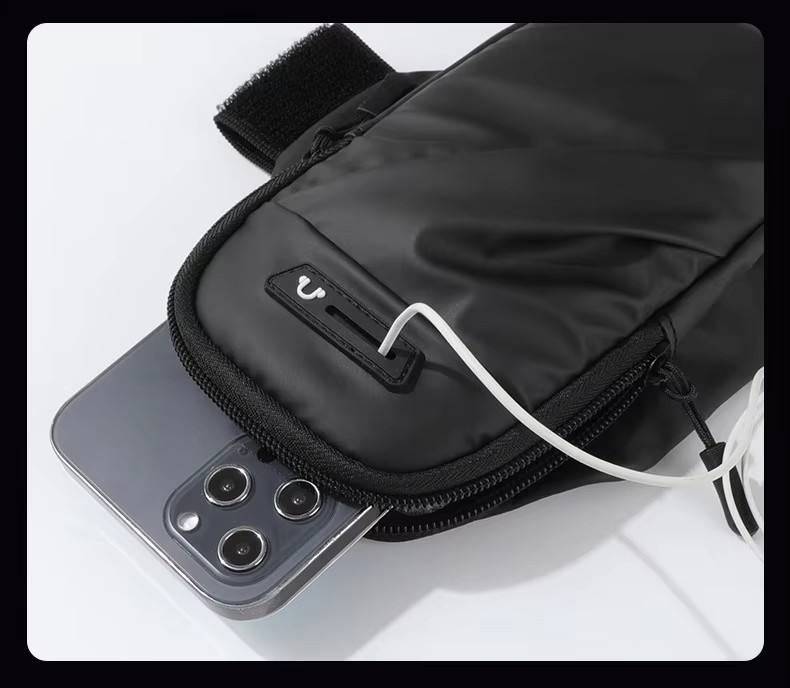 MHK32 Sports PU Cycling Running Wrist Bag Waterproof Zipper Closure Adjustable Mobile Phone Bag Earphone Hole Outdoor Travel