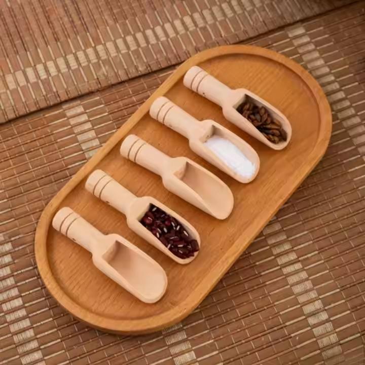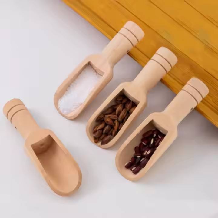 MHK95 Solid Wood Bath Salt Spoon Lotus Wood Small Wooden Spoon Tea Coffee Powder Measuring Spoon