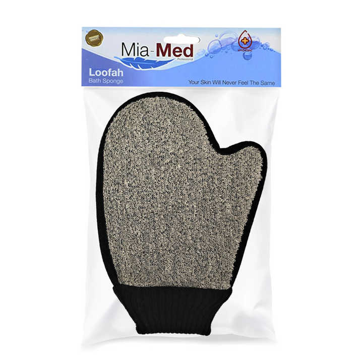 MIA MED Black Large Mesh Towel Glove with Finger Bath Loofah Shower Mitt for Body Cleansing