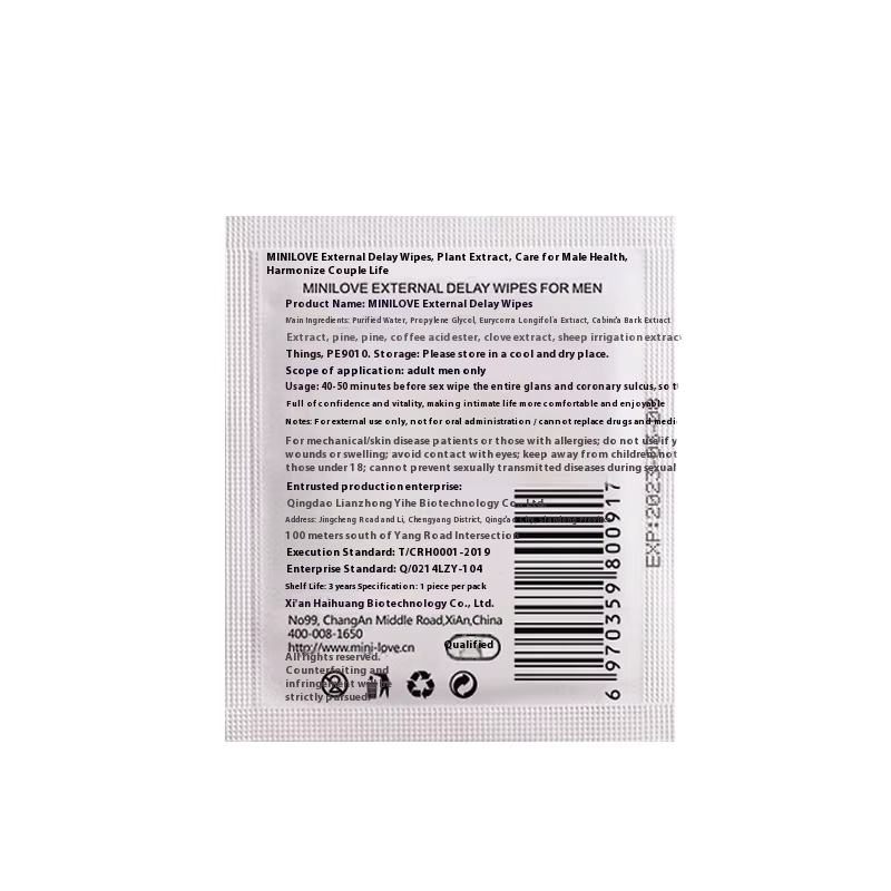 MINILOVE Herbal Best Effact Man Peineili Delay Wet Wipe for Male Sex Long Time Wet Wipes 6 Pcs/Box Men Delay Wet Tissues for MEN
