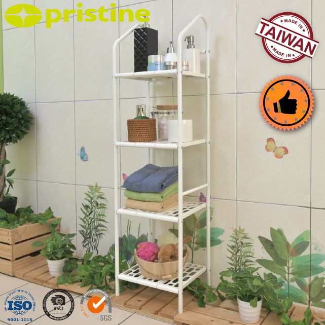 MIT Shelf Metal Frame Bathroom Storage Furniture PP DIY Modern & Hotel Use Taiwan Manufacturer Wholesale for Home Design 4-tier