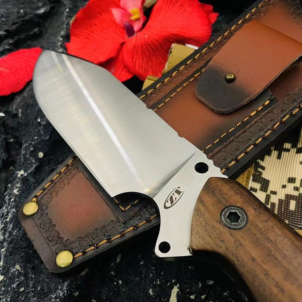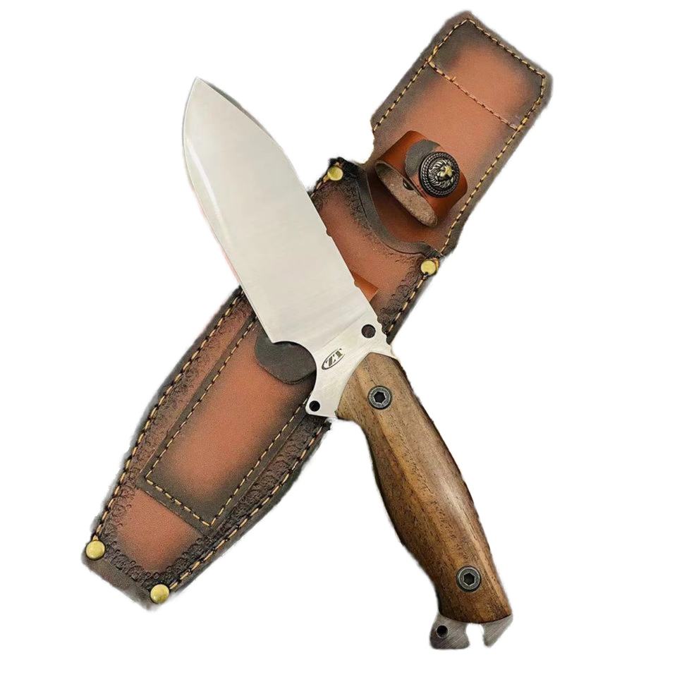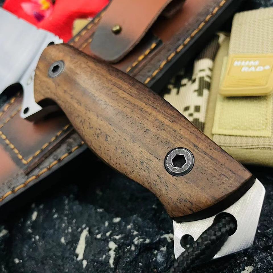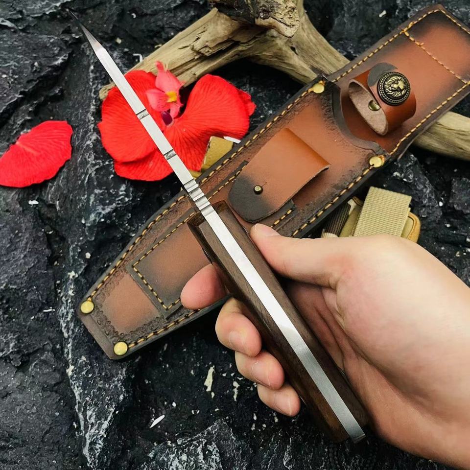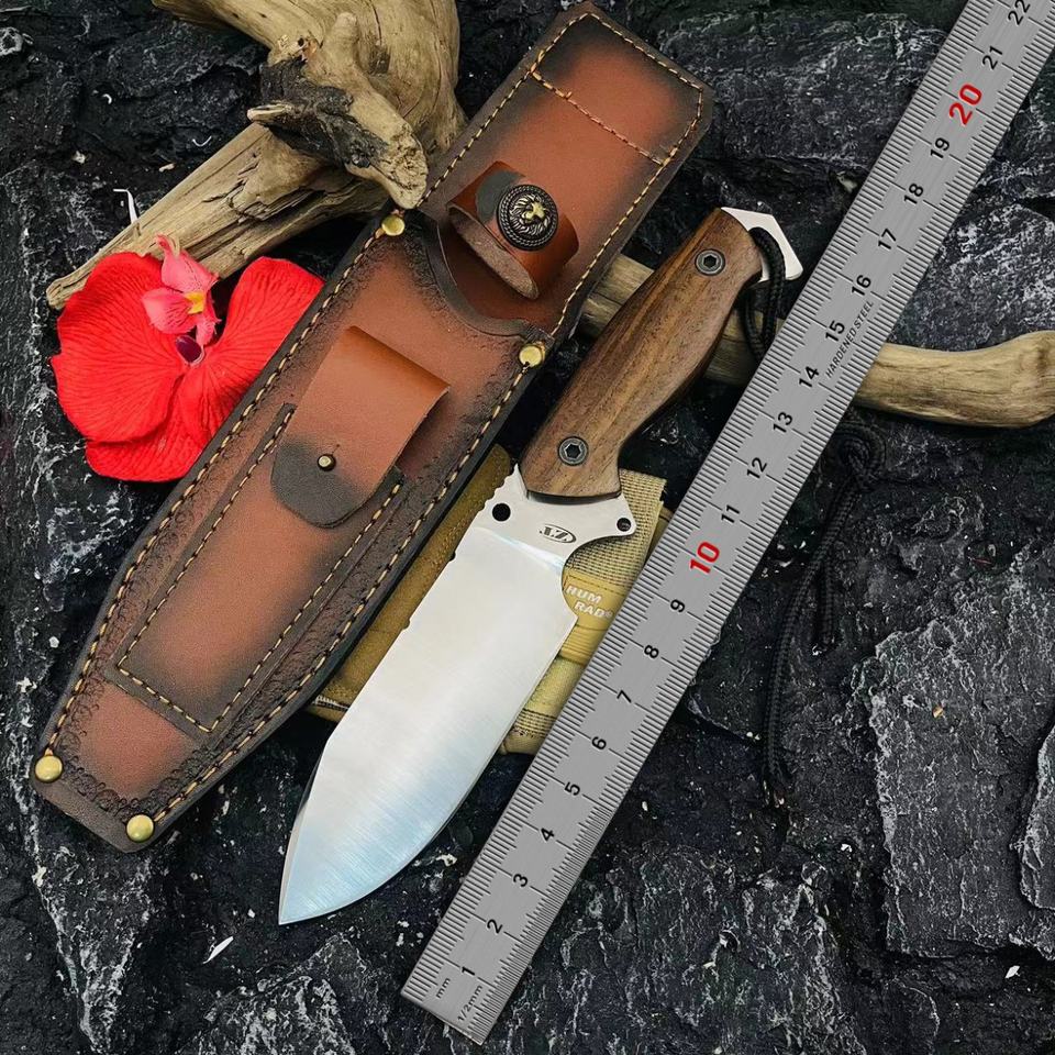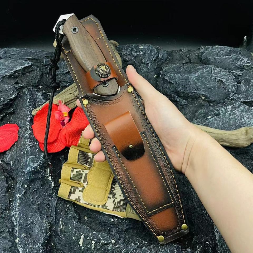 ML C8 High Quality Customizable Tactical Pocket Knife Stainless Steel Blade OEM Plastic Scabbard Wood Handle Leather EDC Combat