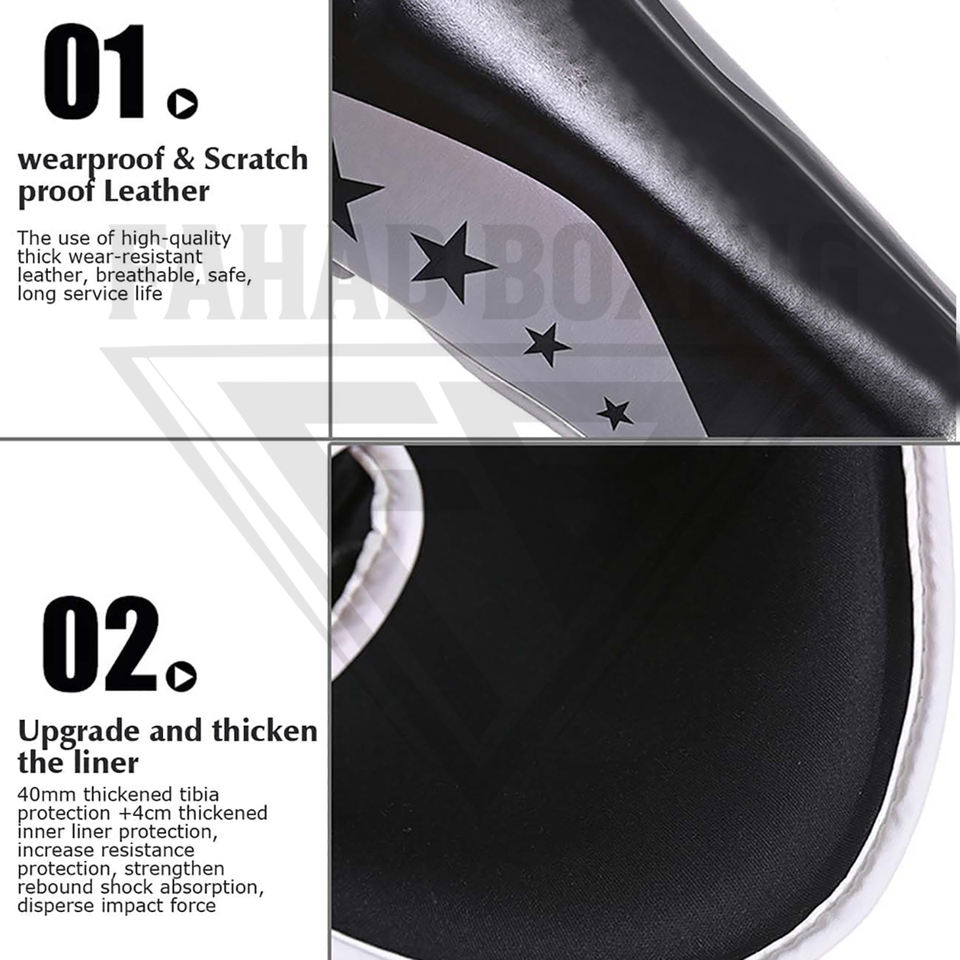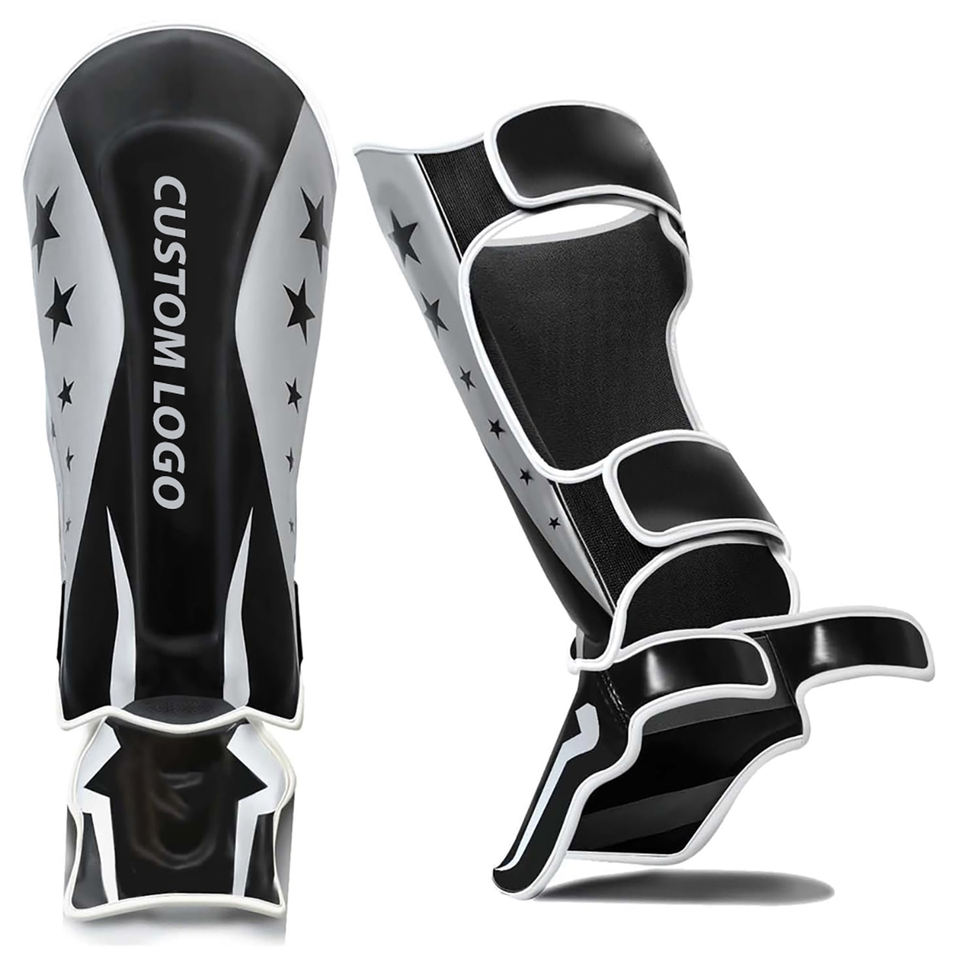 MMA Martial Arts White Black New Arrival Kickboxing Muay Thai Standup Shin Pads Leather Hook Loop Protective Customizable Boxing