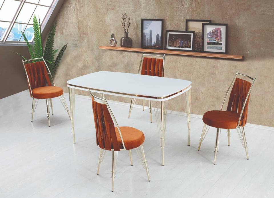 MODERN DINING TABLE SET BEST SELLER DURABLE EUROPEAN STYLE 4-SEATER EXPANDABLE with CHIPBOARD TOP TEMPERED GLASS METAL LEGS