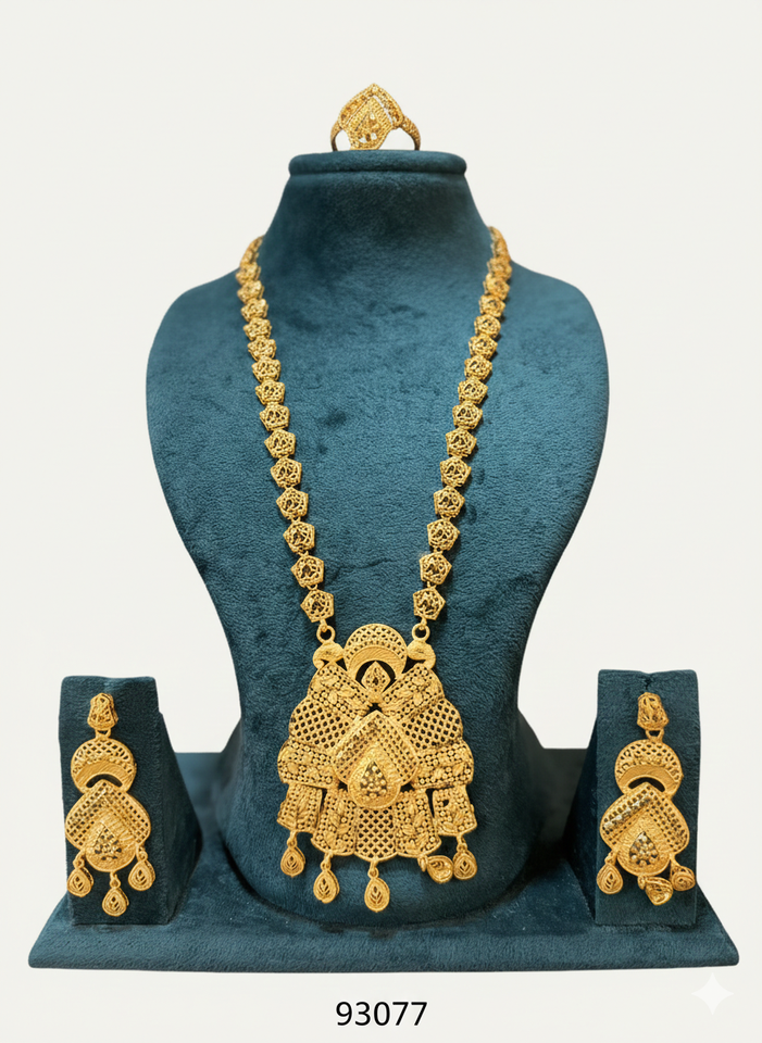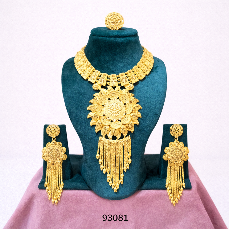 MOLL JEWELLERS Luxury Gold Filled Alloy 24k Zircon Floral Motif Trendy Bridal Wedding Filigree Pendant Necklace Set Women