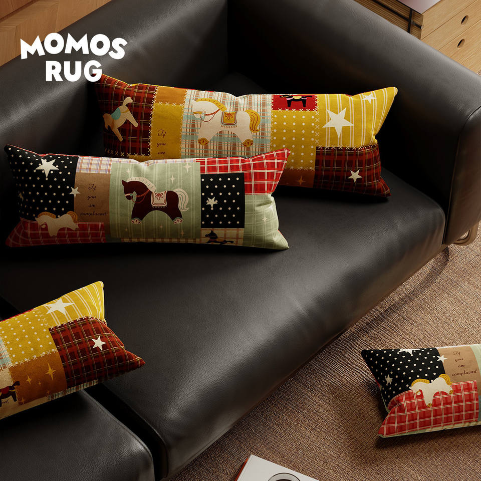 MOMOS RUG Patchwork Pony Sofa Pillow Long Rectangle Cotton Velvet Cushion For Office Car Home Decor