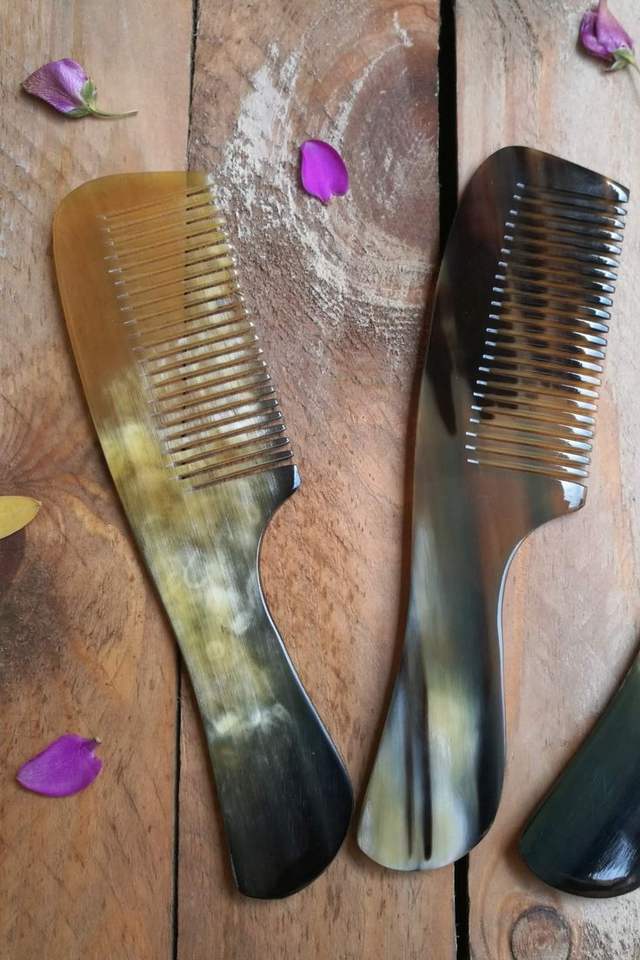 MOOD NATURAL CUSTOMIZED HANDMADE HORN COMB with Fine and Wide Teeth Handmade Buffalo Horn Comb for Hair Styling