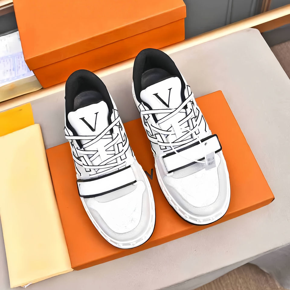 MOOM Evergreen Luxury Men's Casual Chunky Trendy Thick-Soled Cow Leather Rubber Outsole Sock Closure Doodle Pattern All Shoes