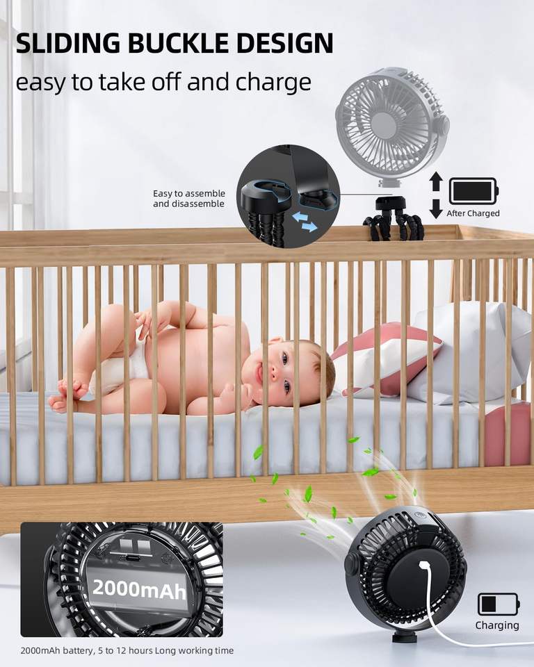 MOQ 2pcs 360 Degree 3 Speed Baby Stroller Rechargeable Batteries Fan Good Quality Portable Baby Stroller Fan with Led Light