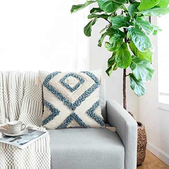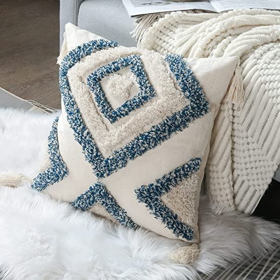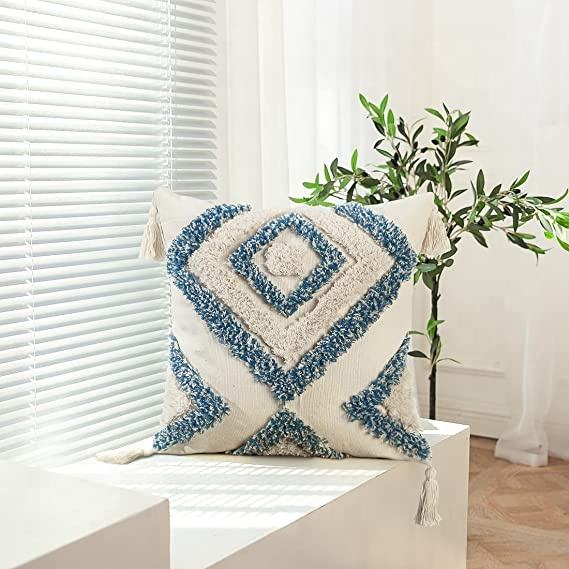 MORE Boho Decorative Throw Pillow Cover, Woven Tufted Pillow Cover with Tassels Diamond Pattern Pillow Covers