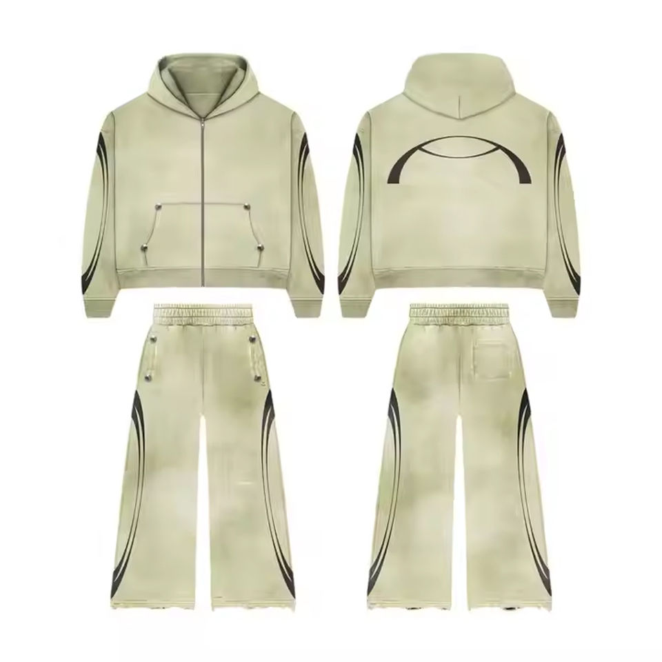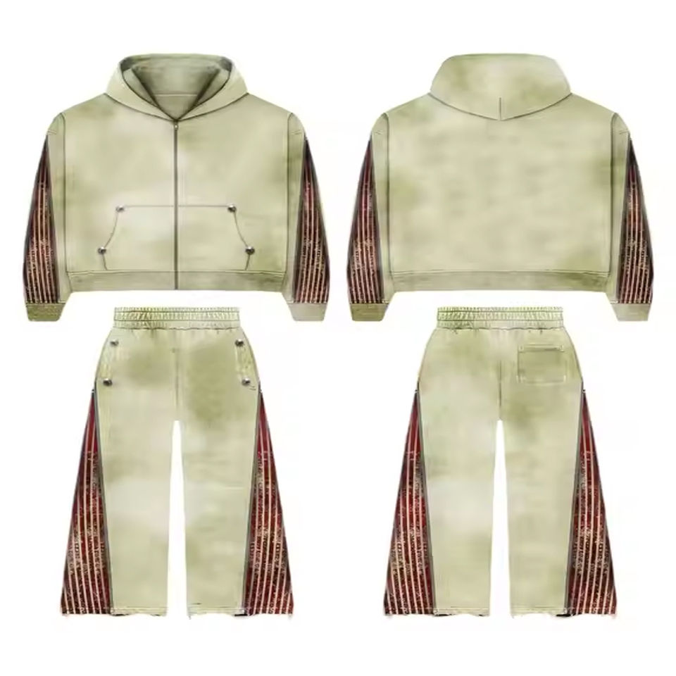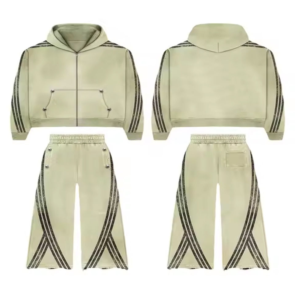 MOVATEXTILE New Design Stones Track Sweat Suit Two 2 Piece Jogger Set for Men Flare Sweat Pants Men With Crop Hoodies Tracksuits
