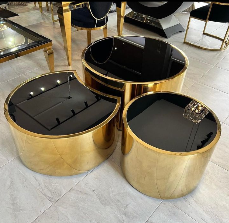 MR 3 Pieces Living Room Coffee Table Set Stainless Steel High-End Accent Table Villa Glass Side Table