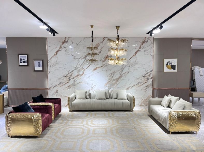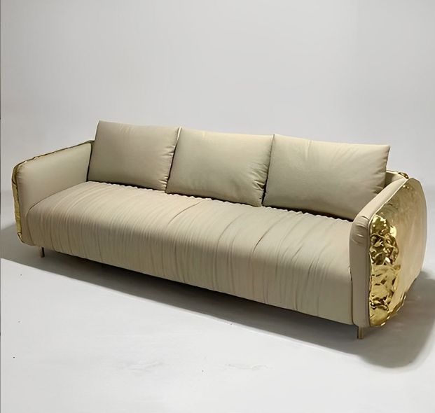 MR Italian High-End Luxury Villa Sofa Leather Contemporary Tufted Fabric Stainless Steel Hammer Pattern Living Room Sofas