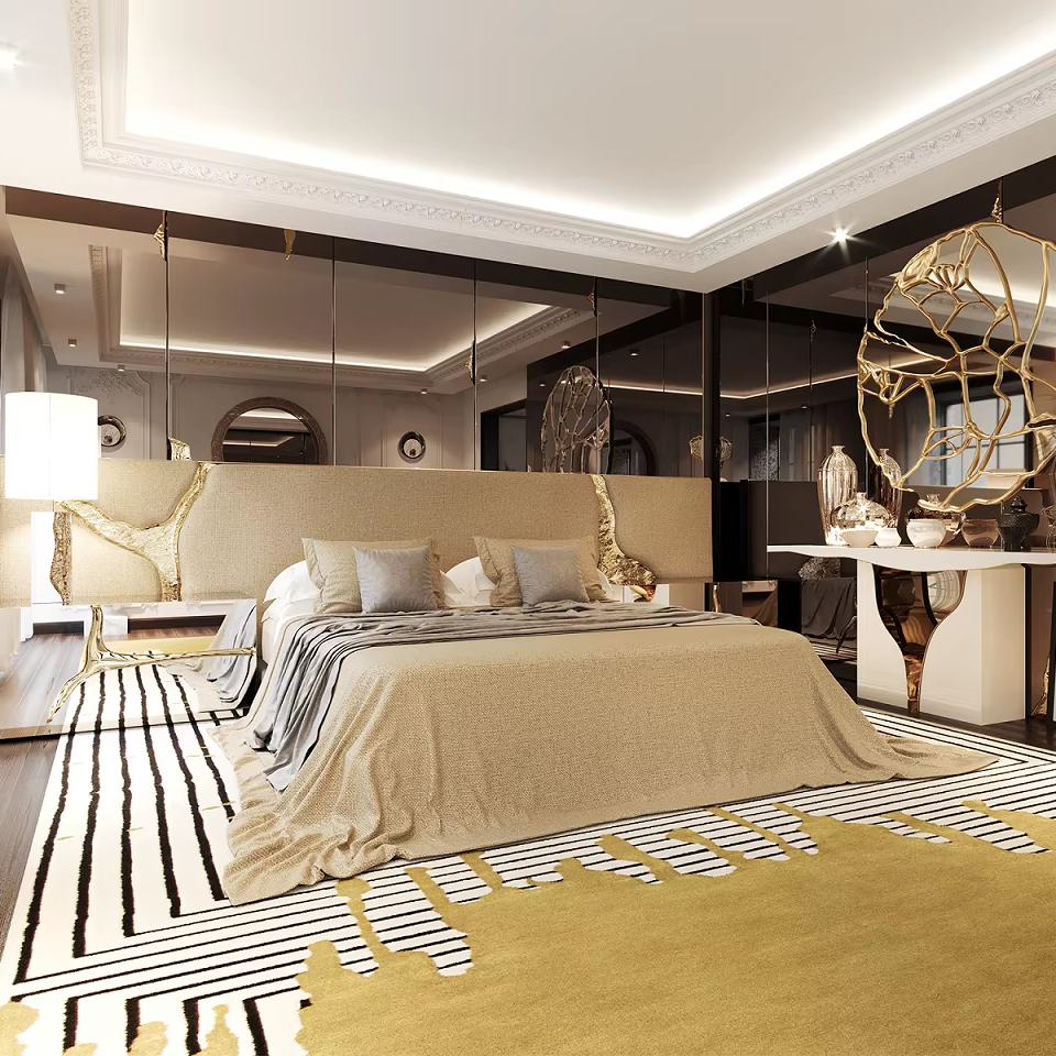 MR Italian Light Luxury Frosted Leather Modern High-End Extend Headboard Bed Frame King Queen Size