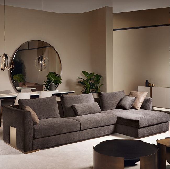 MR Italian Minimalist Leather Sofa Living Room L Shape Modern Design High-end Leather Sofa for Villa Hotel