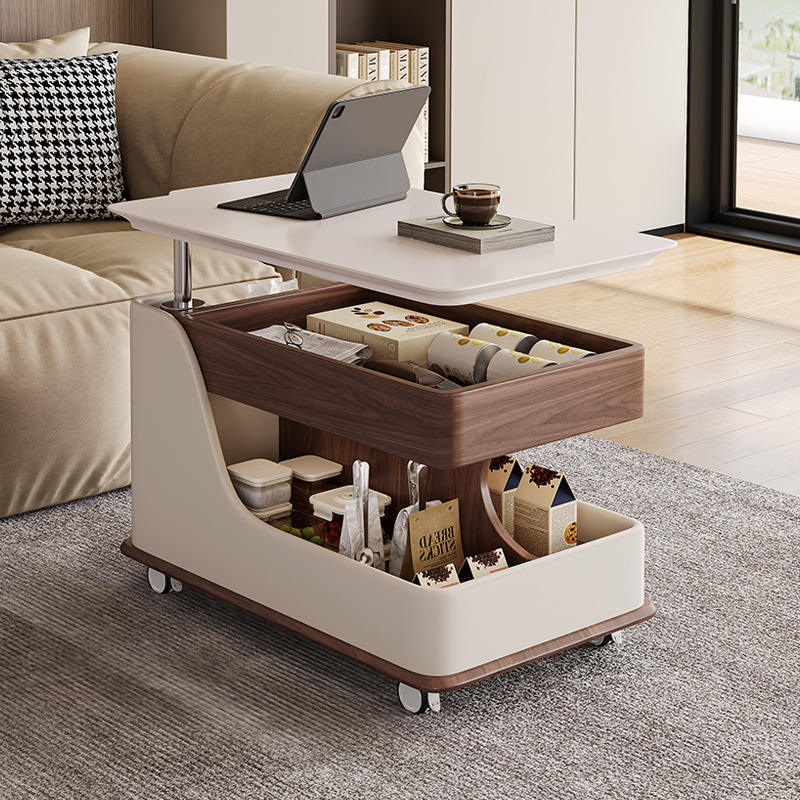 MR Medieval Style Movable Sofa Side Table Wheels Cart Coffee Table Small Household Living Room Lift Folding Table for Home Hotel