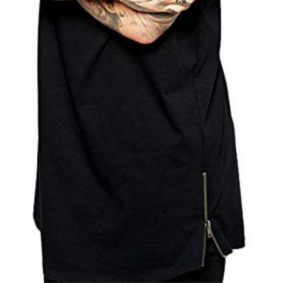 Long Black Zipper T-Shirts Men Tee Tops Man Shirt For Male Tshirt