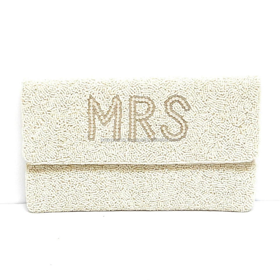 MRS Handmade Fashion Wedding Accessories White Pearl Beaded Clutch Evening Handbag Silver Chain Bridal Purse Casual Handbags