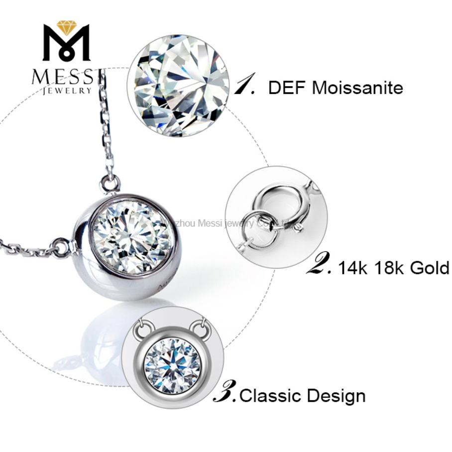 MS-108 Messi Jewelry Solid 14K 18K Rose Gold 1ct Moissanite Pendant Necklace