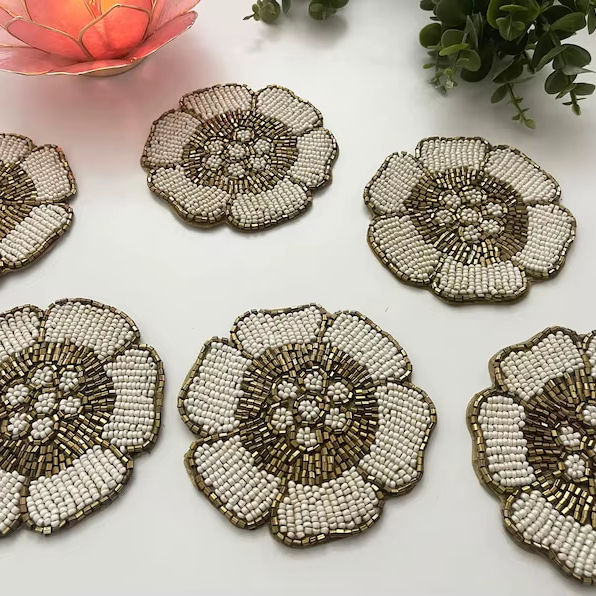 MS HANDICRAFT Handmade Beaded Coasters-Classic Drink Coasters Polyester Backing (4x4 Inch) for Church Religious Gifts Portable