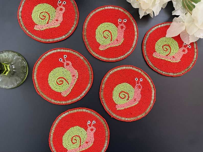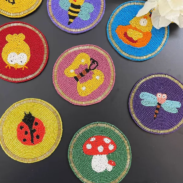 MS HANDICRAFT Handmade Glass Beads Coasters-Classic Square Design Polyester Backing (4x4 Inch) Church Religious Gifts Portable